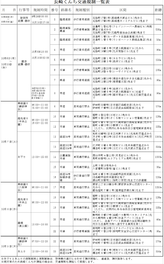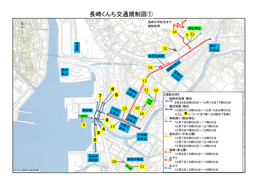 (引用:長崎県警察ウェブサイト「令和7年 長崎くんちに伴う交通規制のお知らせ」より)